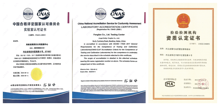 風(fēng)帆有限責(zé)任公司檢測中心(以下簡稱為實驗室)是隸屬于風(fēng)帆有限責(zé)任公司專門從事檢測工作的獨立機構(gòu) 。實驗室于1988年1月由河北省標準計量局、河北省國防科技工業(yè)辦公室、河北省機械電子工業(yè)廳批準為“河北省蓄電池質(zhì)量監(jiān)督檢驗站”。2006年8月15日經(jīng)河北省質(zhì)量技術(shù)監(jiān)督局計量認證和資格認可評審合格后,獲得2006冀質(zhì)監(jiān)認字0020號授權(quán)證書和2006030080D計量認證證書。2009年6月申請成立“河北省蓄電池質(zhì)量監(jiān)督檢驗站”事業(yè)法人單位,獲得河北省事業(yè)單位登記管理局頒發(fā)的“事證第213000001281”號證書。實驗室能夠獨立承擔(dān)第三方公正檢驗,是一個能夠承擔(dān)法律責(zé)任的實體。